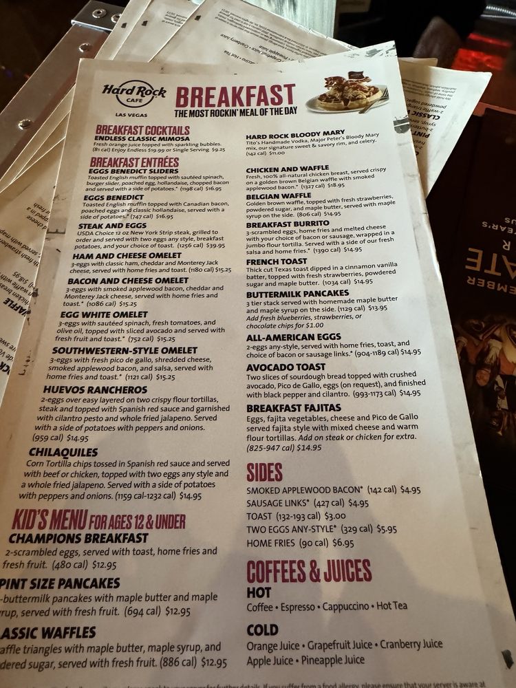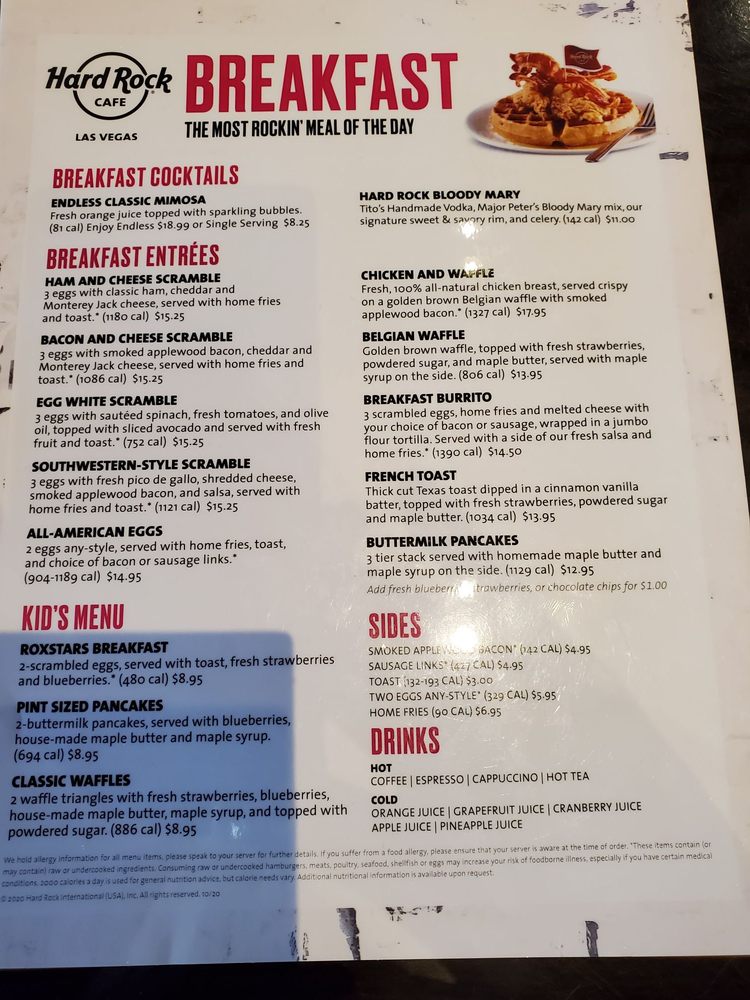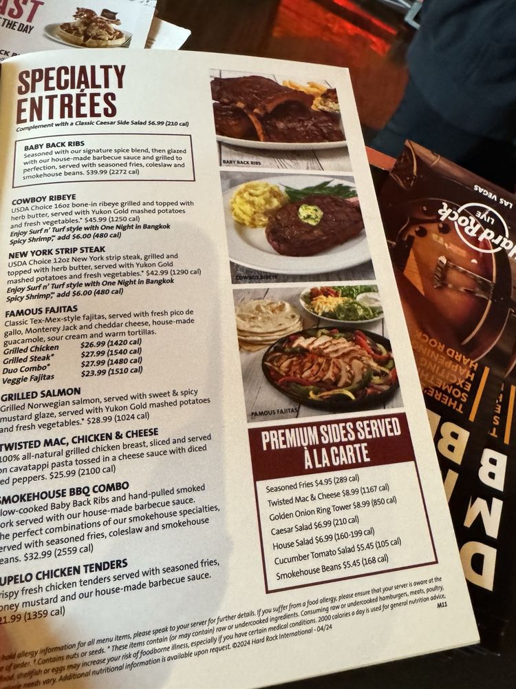 Hard Rock Cafe Las Vegas Menu (Update 2025)